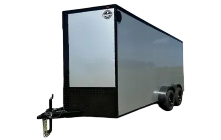 B'ham Trailer Rentals offers a 7x16 Enclosed Trailer with a silver exterior and