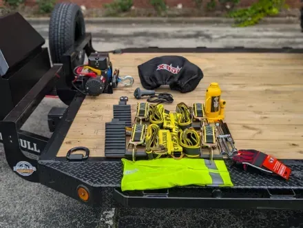 B'ham Trailer Rentals offers a 22 Ft Car Hauler Trailer built for secure, hassle-free vehicle transport. Its 10K GVWR, wide deck, and drive-over fenders make it perfect for hauling a variety of vehicles with ease. Equipped with ramps, a winch, and all essential safety gear, it’s ready for any job.